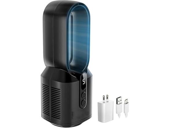 - Bladeless Fan Design for Comfortable, Focused Airflow: This desktop fan features a bladeless design for added safety and easier cleaning. It quietly pulls in air and amplifies it to deliver a steady, concentrated breeze—ideal for personal use at your desk or bedside.