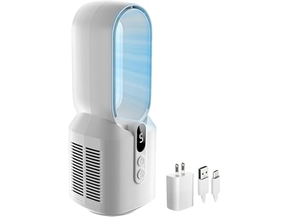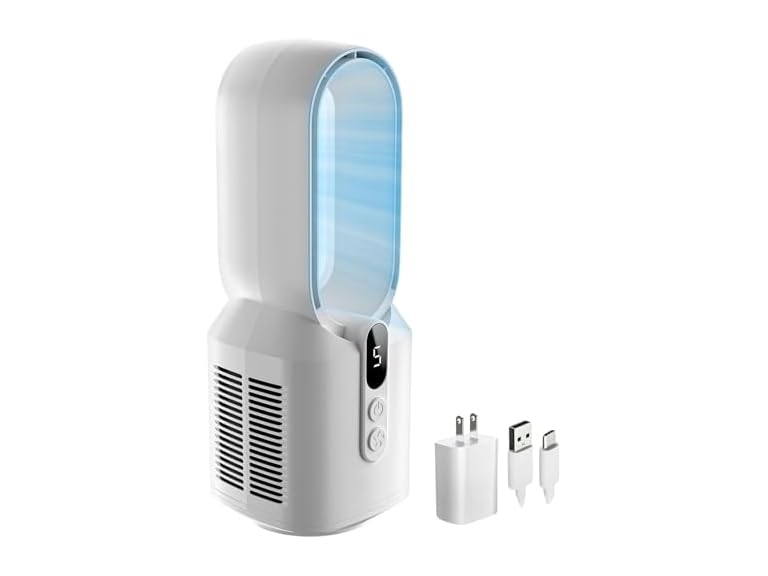 - Bladeless Fan Design for Comfortable, Focused Airflow: This desktop fan features a bladeless design for added safety and easier cleaning. It quietly pulls in air and amplifies it to deliver a steady, concentrated breeze—ideal for personal use at your desk or bedside.