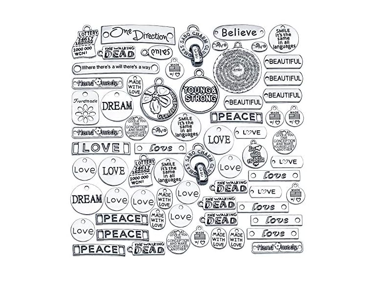 - PACKAGE INCLUDE -- You will get 100g (about 40-60pcs) inspirational lettering words charms pendants, the quantity and style of these charms are randomly mixed.