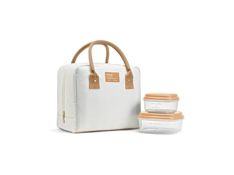 - (1) Fit & Fresh Lunch Bag For Women, Insulated Womens Lunch Bag For Work, Leakproof & Stain-Resistant Large Lunch Box For Women With Containers, Zipper Closure Bloomington Bag, Ivory Woven