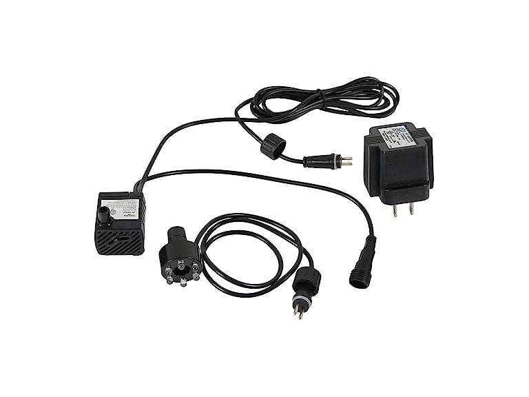 - (1) Sunnydaze 40 GPH Submersible Water Pump – 12V Small Fountain Pump with Adjustable Flow, 6-Color LED Light & Transformer