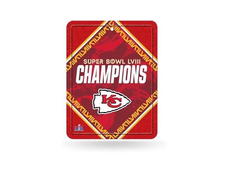 - (1) Rico Industries NFL Football Kansas City Chiefs 2024 Super Bowl LVIII Champions 8.5" x 11" Carbon Fiber Metal Parking Sign - Great for Man Cave, Bed Room, Office, Home Décor