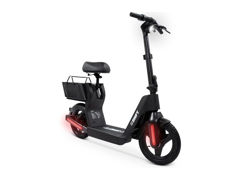 The SWFT SD Electric Scooter redefines urban mobility by combining performance, comfort, and convenience in a sleek and modern design. Whether you’re commuting to work, running errands, or simply enjoying a leisurely ride, this sit-down electric scooter offers a seamless blend of speed, stability, and smart features to enhance your journey. With a 400W motor, the SWFT SD reaches speeds of up to 18 mph, delivering an efficient ride across various terrains. The 36V 7.8Ah lithium-ion battery offers up to 15 miles per charge, and with a 6.5-hour recharge time, you’ll be back on the road quickly. Designed for maximum comfort, the SWFT SD features a spacious, cushioned seat, allowing riders to enjoy a relaxed and ergonomic riding position. The 14-inch tires offer superior traction and shock absorption, ensuring a stable and controlled ride over uneven surfaces. Whether you're navigating busy streets or cruising along smooth pathways, this scooter delivers a comfortable and enjoyable experience. Safety is at the forefront of its design, featuring built-in turn signals and brake lights that enhance visibility and ensure a safer ride, especially in traffic or low-light conditions. A bright LCD digital display keeps you informed of essential ride metrics, including speed, battery life, and selected riding mode, allowing you to monitor your performance in real time. The scooter also includes an advanced NFC locking system, allowing you to secure your scooter using a personalized PIN or the included NFC key, adding an extra layer of protection when parked in public spaces. Combining power, security, and convenience, the SWFT SD Electric Scooter is an ideal choice for commuters and urban explorers. Whether for daily travel or city adventures, this sit-down scooter delivers a reliable and enjoyable ride every time.