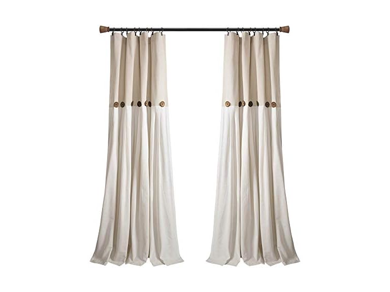 - (1) Lush Decor Linen Button Window Curtain Panel, Single, 40" W x 95" L, Linen- Country Curtains - Rustic Decor - Color Block - Modern Farmhouse Curtains