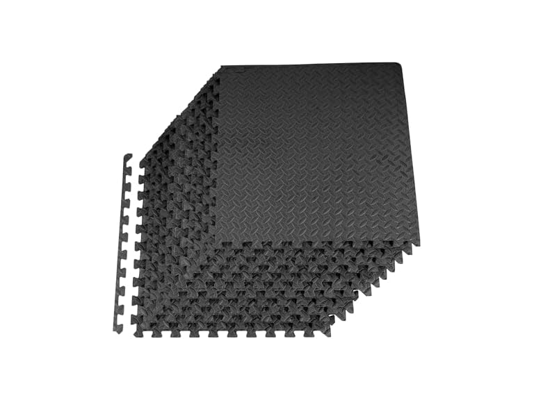- (1) Signature Fitness Puzzle Exercise Mat with EVA Foam Interlocking Tiles, Black, 1/2” Thick, 12 Tiles, 48 Sq Ft