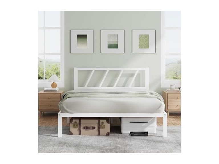 - Generous Storage Space - This white platform bed frame provides 14 inches of space under the bed, giving you plenty of room to store your items and keep your bedroom organized. This elevated design makes it easy for robot vacuums to clean underneath, helping you keep the room tidy. There is also no box spring needed.