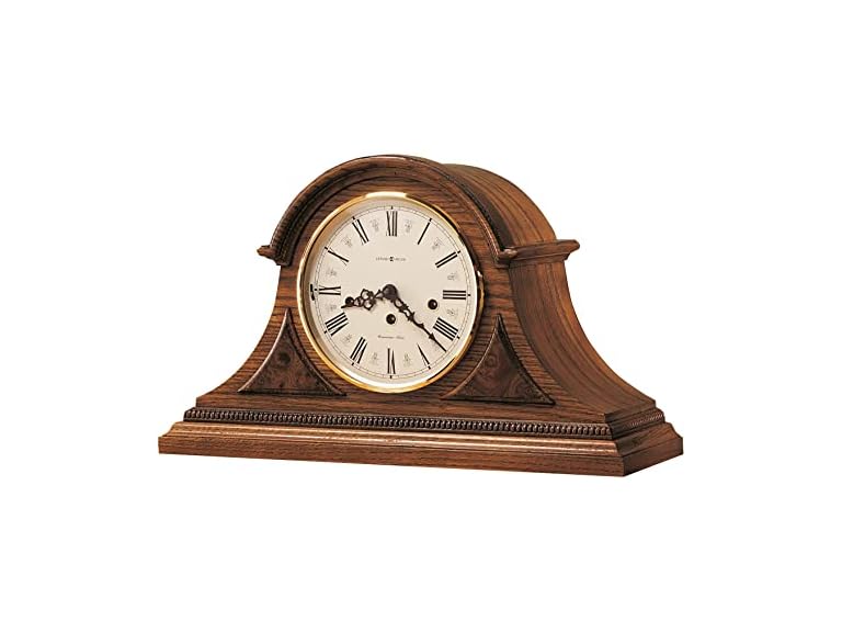 - (1) Howard Miller Worthington Mantel Clock ‚ Key Wound Mechanical Wooden Mantel Clock with Westminster Chime Cream Roman Numeral Dial Rare Olive Burl Overlays & Antique Detailing for Home Decor