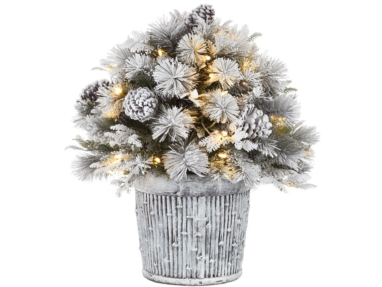 - (1) National Tree Company 22" Feel Real ® Snowy Chiwaw Basin Tree with Pine Cones & 50 Warm White LED Lights-UL/CUL