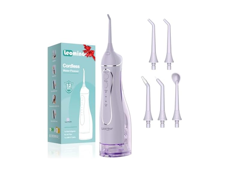 - 【 Portable & Powerful Battery Life 】30-DAY Long Battery Life, USB Fast Charing. Say goodbye to frequent charging! Leominor portable water flosser boasts a 30-day long battery life, meeting your long-term usage needs with a single charge. Additionally, our wireless water flosser is compact and lightweight, making it easy to pack in your suitcase or backpack. Whether for daily use or travel, it's your best companion