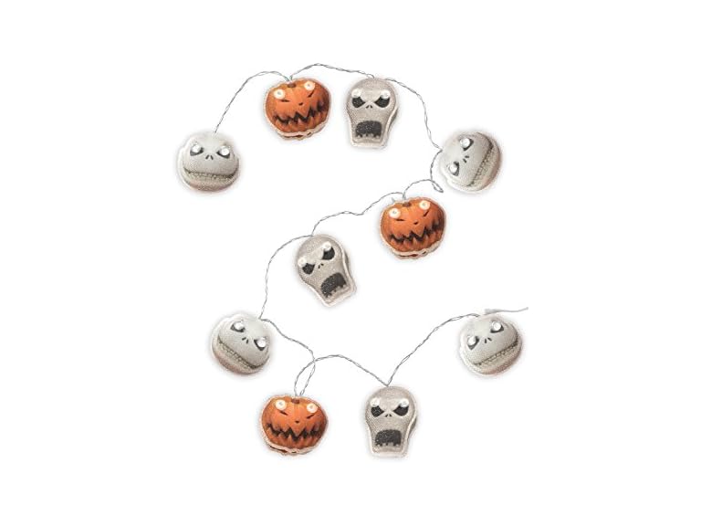 - 10 HANGING LIGHTS: The Nightmare Before Christmas hanging string lights features 10 hanging string lights. Measures 11.5 feet long. 3 AA batteries required for lighting use, not included.
