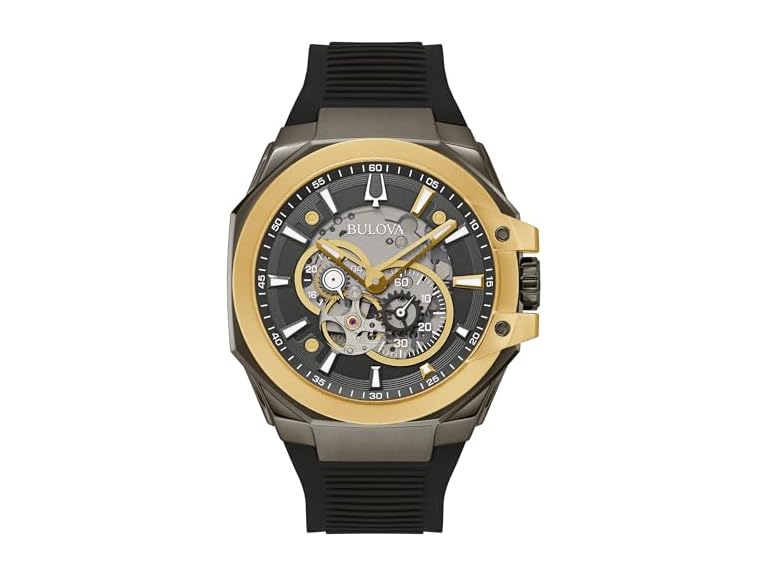 - The watch is paired with a rugged silicone strap with a secure 3-piece buckle closure. Combining Marc Anthony’s stylish edge with Bulova’s precision, this new Bulova men’s Maquina timepiece is the perfect companion for those who want to make a statement.