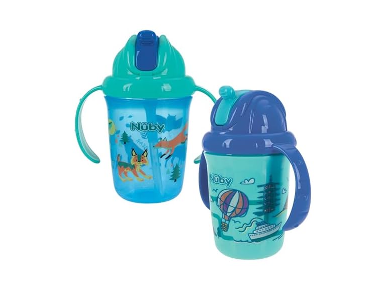 Nuby No-Spill Trainer Soft Straw Two Handle Cup, 2 Pack