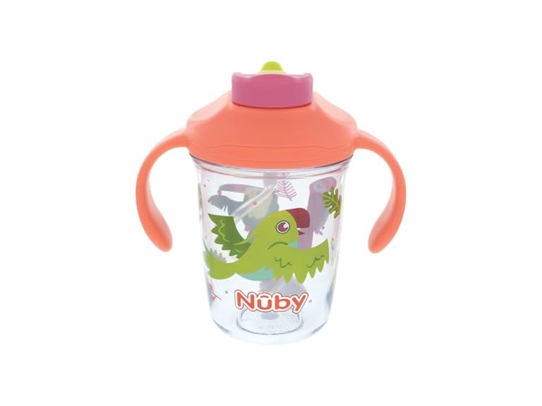 - 2-IN-1 LID DESIGN: The dual-function, dishwasher safe lid features a 360° weighted straw and a hard spout, offering two spill-resistant ways to drink in one convenient Nuby sippy cup