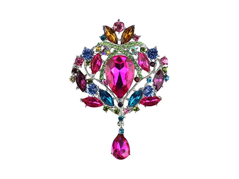- Materials & Weight - Alloy, Glass, Cubic Zirconia; N.W: 40.2G. Beautiful created teardrop created crystal set the whole to advantage. Floral brooches and created crystal brooches for women, are exquisite fashion accessories that add charm and elegance to any attire.