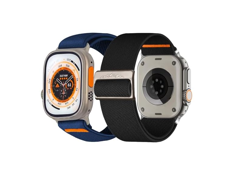 - 【Ultra-Wide Design Stretchy Nlyon Band】26mm wide apple watch ultra bands for men are compatible for Apple Watch Ultra 2 Band and big screens. The expanded width not only adds a touch of modern flair but also ensures a secure and comfortable wear throughout the day.