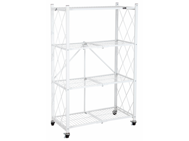 Origami 4-Shelf R4 Series Say hello to our newest heavy duty multi-functional storage rack. Our rock solid shelf can hold up to 160 LBs of your stuff. Not only is it functional but super easy to set-up. Unfold and latch and its ready to use in 20 seconds. No tools or assembly required! Organizing doesn't get any easier than this! Great for all your storage needs no matter the space.