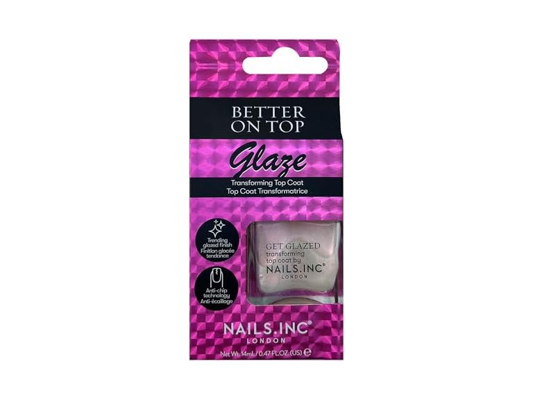 (1) Nails Inc Better On Top, Get Glazed, Glossy, Shimmery, Top Coat, No Chip, Long Lasting, Quick Dry, Air Dry, Professional Manicures & Pedicures, Fingernails & Toenails, Vegan Nail Polish, 0.47 Fl Oz