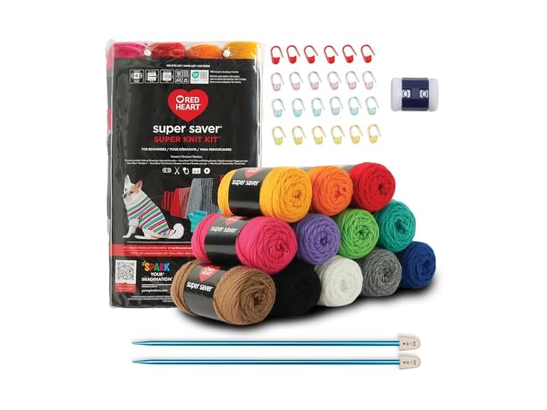 - This package contains one Red Heart Super Saver Super Yarn Knit Kit W/Accessories.