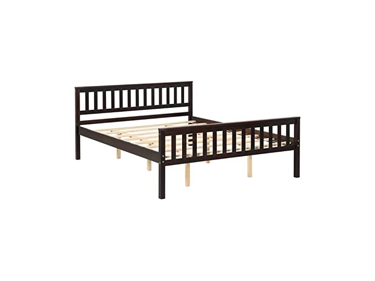 - 【Comfortable Mattress Foundation】The stylish bed frame was designed with comfort in mind. The unique headboard design with natural wood accents is ideal for people who spend a lot of time performing upright activities in bed, such as reading or watching TV. Our sturdy platform bed is topped by wooden slats, a set-up that offers a great deal of noise free support and prevent shaking, ensure premium long-lasting comfort and a flawless night’s sleep.