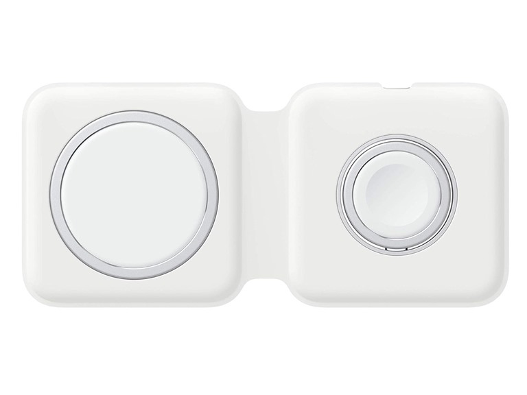 The MagSafe Duo Charger conveniently charges your compatible iPhone, Apple Watch, Wireless Charging Case for AirPods, and other Qi-certified devices. Just place your devices on the charger and a steady, efficient charge begins on contact. The charger folds together neatly so you can easily take it with you wherever you go.Recommended: 20W USB-C Power Adapter (sold separately)
