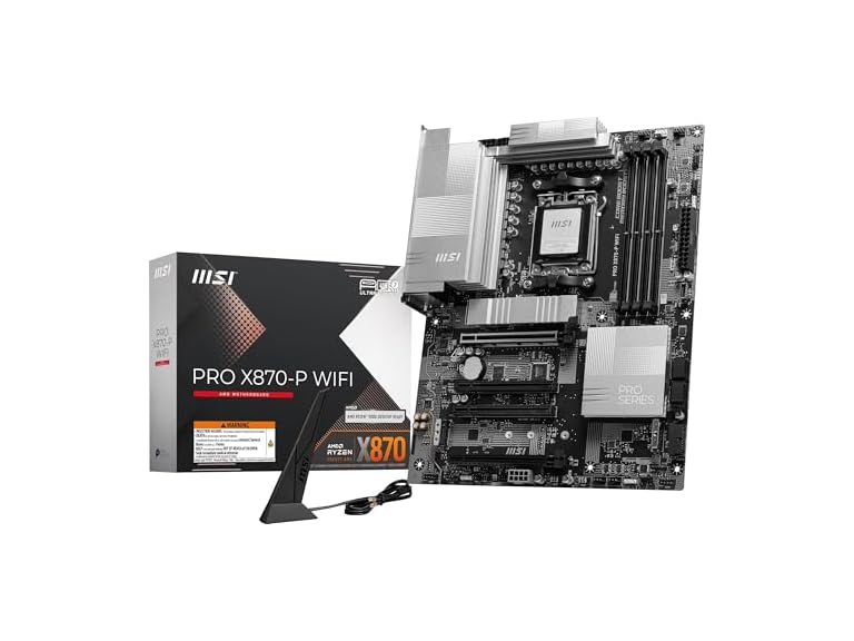 - (1) MSI PRO X870-P WiFi V1 ProSeries Motherboard (AMD Ryzen 9000/8000/7000 Series Processors, AM5, DDR5, PCIe 5.0, M.2 Gen5, SATA 6Gb/s, USB 40Gbps, HDMI/DP, Wi-Fi 7, Bluetooth 5.4, 5Gbps LAN, ATX)