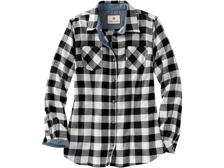 - (1) Legendary Whitetails Women's Standard Long Sleeve Plaid Flannel Button Up Shirt 100% Cotton, White Buffalo Check, X-Large