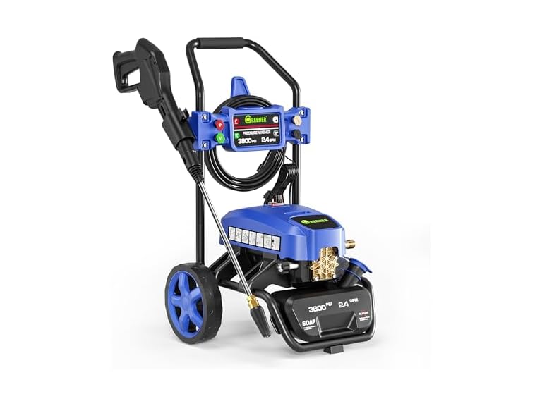 - 【Easy To Use】Heavy-duty 120V AC electric pressure washer, Long-Lasting, Maintenance-Free, Axial 3 Piston Auto-Stop Pump. The pressure washer automatically shuts off when you release the trigger, and instantly reactivates when you pull it again. This smart design cuts water waste while saving energy