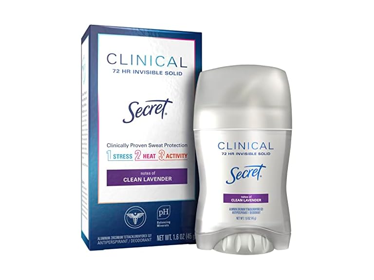 - (1) Secret Clinical Strength Antiperspirant and Deodorant Women, Lavender, 72 Hr Invisible Solid, 1.6 oz