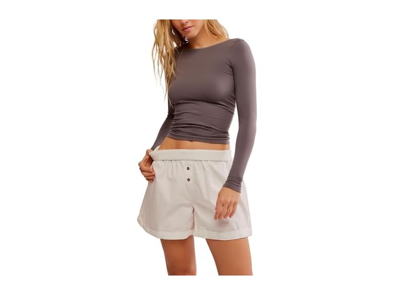 - (1) Free People Women's Low Back Seamless Long Sleeve, Dark Gull Gray, Medium-Large