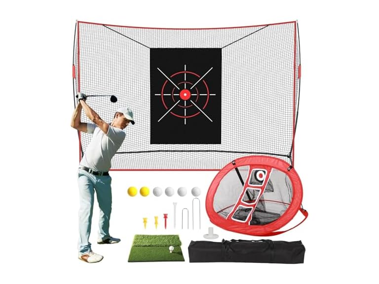 - Versatile Chipping Net with 3 Target Zones: Hone your short game with the included golf chipping net that features 3 target zones for lob shots, pitch shots, and chip shots; This versatile training aid allows you to practice various techniques, helping you perfect your precision and accuracy, whether you’re at home or on the go