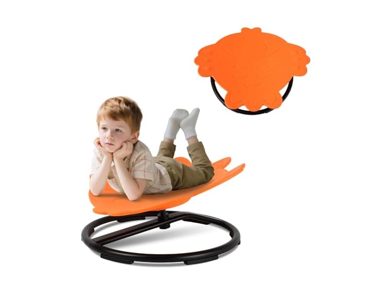 - (1) FAHKNS Spinning Chair for Autistic Kids Sensory Products Sit and Spin Autism Toys Spinning Chair ADHD Training Body Upgrade and Thicken Version (Orange)