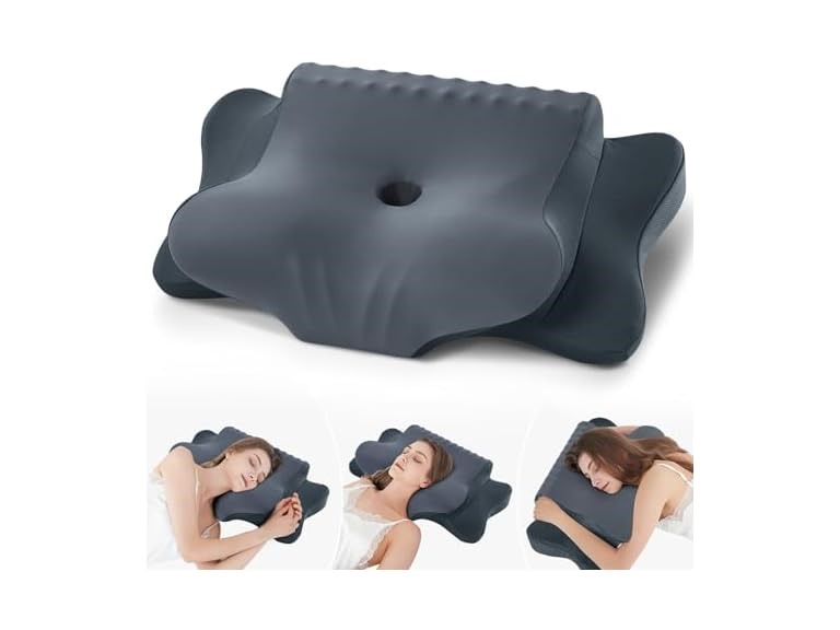 - SIDE SLEEPERS' HOLY GRAIL – ARM REST SHELF DESIGN – Multi-zone support to alleviate neck stiffness, migraines, and shoulder pain caused by poor posture. “Finally, a pillow that cares about your arms!” Our patented widened side wing lets side sleepers rest their arms naturally, eliminating “numb arm → midnight agony” cycles! The 15° tilted center cavity locks your head in place, reducing sleep-position shifts by 83% (third-party lab tested) – say goodbye to stiff necks!