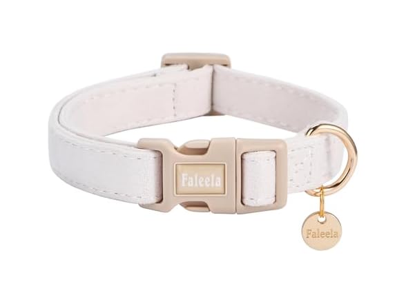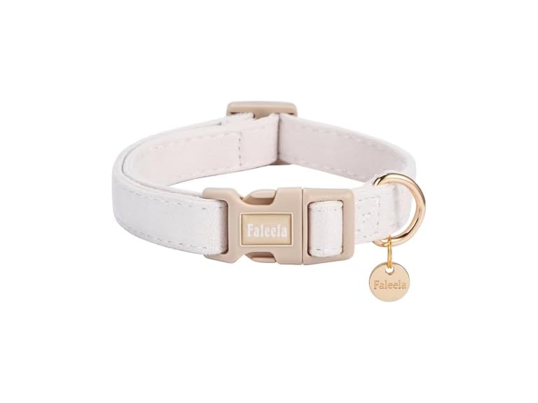 - (1) Faleela Dog Collar - Cute & Comfy Cotton Pet Collar, Adjustable Lightweight Design with Quick-Release Buckle, for Small, Medium & Large Dogs - (Large, Beige)