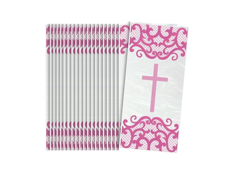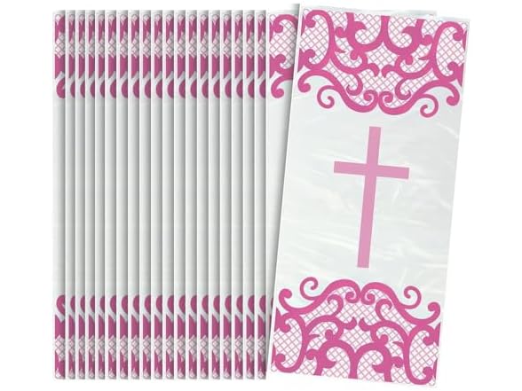 - ELEGANT DESIGN: Our fancy pink cross cellophane bags feature an intricate and graceful pink cross pattern, making them the perfect addition to any religious event, such as baptisms or communions.