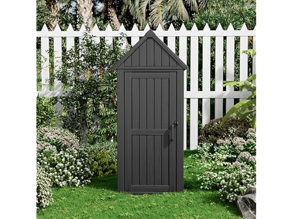 - 【COMPACT & SPACE-SAVING DESIGN】With dimensions of 64.17"H × 25.79"W × 22.05"D, this slim-profile shed is designed to fit neatly in tight spaces—ideal for patios, balconies, or placement along walls. It offers well-organized storage for lawn tools, sports gear, and other outdoor essentials without crowding your space.
