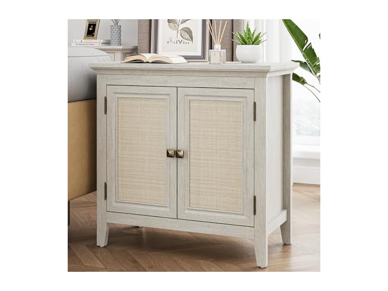 - Sturdy Construction: Crafted from robust P2-grade MDF and breathable natural rattan, this accent cabinet guarantees durability and safety. An anti-tipping design adds extra security for you and your family.