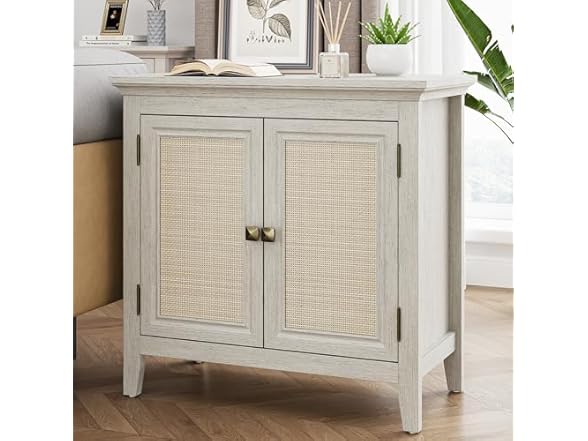 - (1) Rattan Sideboard, Kitchen Sideboard Cabinet with Adjustable Storage Shelf, Accent Buffet Cabinet with Rattan Doors, Wood Cabinet Organizer for Dining Room, Hallway, Living Room, White