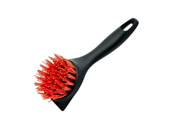 - VERSATILE BRUSH: strong and durable nylon bristles remove grease build-up and loosen dirt and grime on pots, pans, cooking utensils, small kitchen cooking appliances, and stovetops, and won’t damage cast iron products