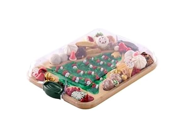 Bring holiday hosting to a new level with the Farberware Tree Build-A-Board. Designed for seasonal spreads, dessert assortments, charcuterie, candy displays, and festive gatherings, this board delivers a polished way to make it, take it, and enjoy it all season long. The carved tree silhouette creates natural tiers and sections for styling everything from cookies and chocolates to meats, cheeses, fruits, and nuts. Whether building a themed dessert board, setting up a charcuterie tree, or creating a fun kid-friendly treat tray, the layout guides the arrangement so it looks impressive with minimal effort. For travel or storage, the included clear locking lid snaps into place to help keep your arrangement protected when moving from kitchen to table or heading out to holiday events. It’s portable, sturdy, and practical for parties, cookie exchanges, office gatherings, and family celebrations. Farberware Build-A-Board products stand out thanks to their thoughtful engineering, sturdy construction, and versatile dual-function design. Each board offers a smooth flat surface for everyday prep on one side and a shaped, sculpted presentation side on the other. This flexibility makes the Tree Build-A-Board not just festive, but genuinely useful long after the holidays. With spacious carved sections, easy styling, and a lid that keeps everything neatly contained, this board delivers the kind of convenience and visual impact that typical trays, plastic containers, or seasonal novelty boards can’t match. Farberware’s experience in kitchen design shows in every detail, creating a product that feels elevated, functional, and ready for any gathering. Perfect for holiday hosting, gifting moments, and creative entertaining traditions that your family can enjoy year after year.