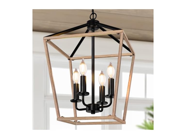 - ✔【Statement-making Light】The oak wood foyer chandelier with 4-light interior candelabra provides abundant light to your home while lending a rustic flair in an iconic lantern silhouette. With its dense modern farmhouse style, it is both a lighting fixture and a great decoration in any space like dining room, kitchen island, living room, bedroom, hallway and foyer. Great choice for your home decor.