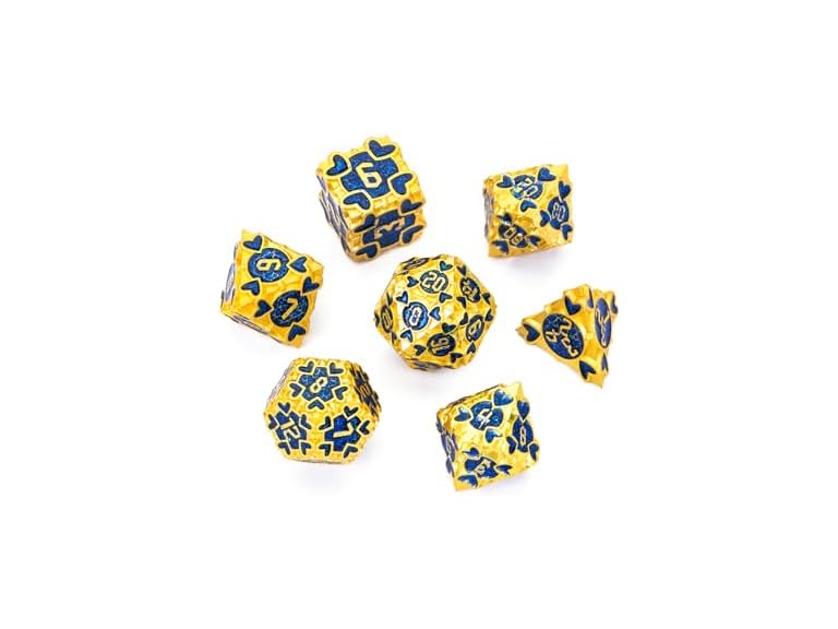 - (1) Fatestone Metal D&D Dice Set 7pcs Dice Set Box Suitable for Dungeons and Dragons MTR PRG Tabletop Games (Gold-Blue)