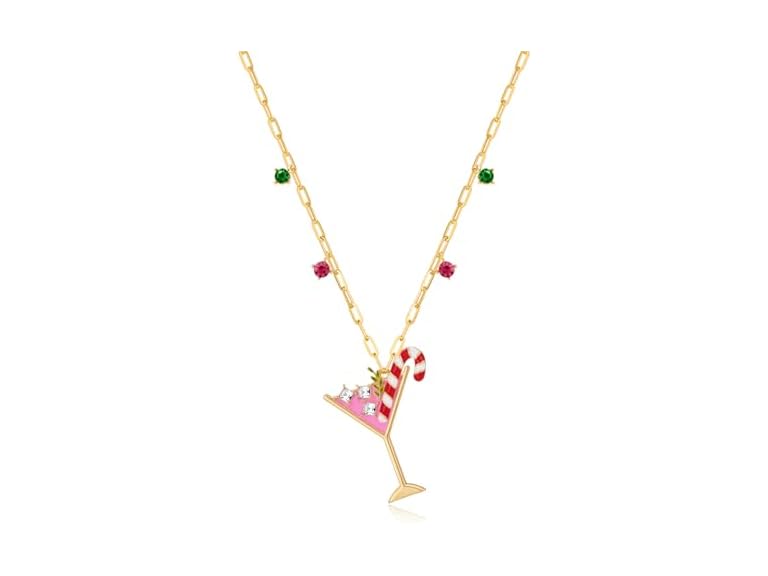 - Festive Christmas Charm: Embrace the holiday spirit with this beautifully crafted Christmas-themed necklace. Featuring a playful martini glass charm with a candy cane and crystal accents, it’s the nice touch of holiday cheer for your wardrobe.