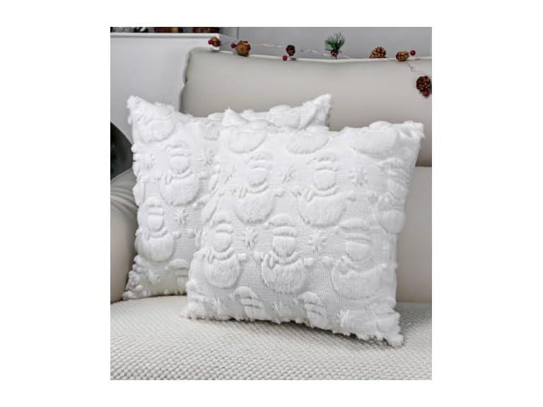 - (1) multiwins Christmas Pillow Covers 16" x 16" Set of 2, Soft Plush Faux Rabbit Fur with 3D Embroidery Snowman Design, Throw Pillow Covers for Sofa, Winter Holiday Christmas Decor,Skin-Friendly
