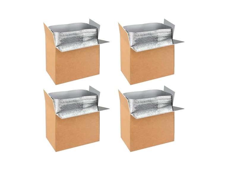 - (1) YSSOA 4 Pack Insulated Shipping Boxes with Aluminum Foil Liner,Thermal Insulation Cold Pack Shipping Boxes for Frozen, Reusable Styrofoam Cooler Box, Small Mailing Box, 19''x12''x16''