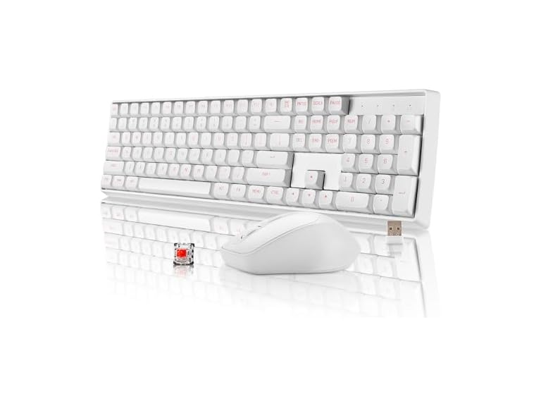 - (1) darkFlash Wireless Mechanical Keyboard and Mouse for Office, 106 Keys Full-Size Keyboard and Mouse Combo, Linear Red Switches for Windows/Mac Computer Office Desktop Laptop(GK104) (White)