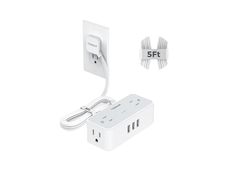 - TESSAN 5ft SP Power Strip (4 Outlets, 3 USB-A)