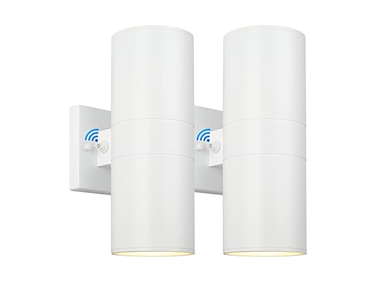 - Modern Cylinder Design: Adopted with simple cylinder shape, 2 clear glass cover and stylish white finish, our up down wall lights are so versatile for all occasion such as front doorway, garden, garage, porch, driveway, driveway, yard, roadway, parking lots, sidewalk, building wall or commercial usage as overnight security outside lights, area and perimeter lighting, etc. Dimension: 4.11in diameter*11.8in high, 4.7in*4.7in square mounting plate.