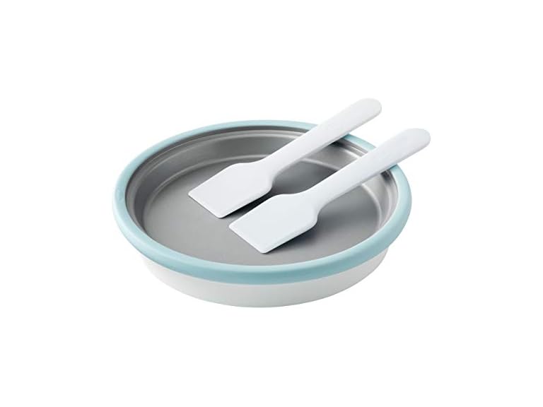 - COMPLETE KIT: Set includes ice cream maker, scoop, spade, and recipe book. The instant dessert pan measures 11.38 inches in diameter and creates 1-2 servings of frozen treats.