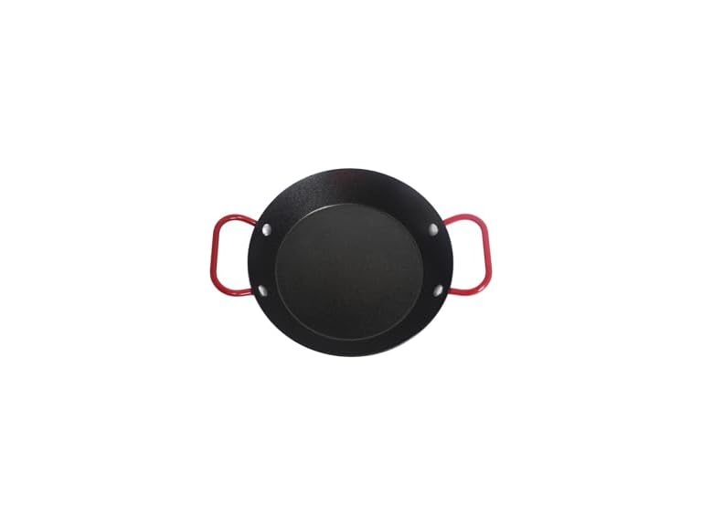 - QUICK HEATING STURDY DESIGN: This paella pan rapidly heats and cooks, is suitable for oven and open fire use and it boasts high walls and sturdy riveted red handles for a secure grip
