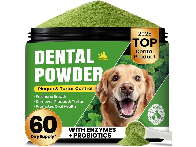 - 【Easy to Use】 No more hassle with brushing—just mix our dog dental powder into meals. This easy dog teeth cleaning powder works as a dental powder for dogs teeth, tartar remover for teeth, and dog breath freshener. A great alternative to any dog toothbrush and toothpaste or dog tooth brushing kit, it's a plaque off powder dog favorite for a cleaner, fresh pet smile.
